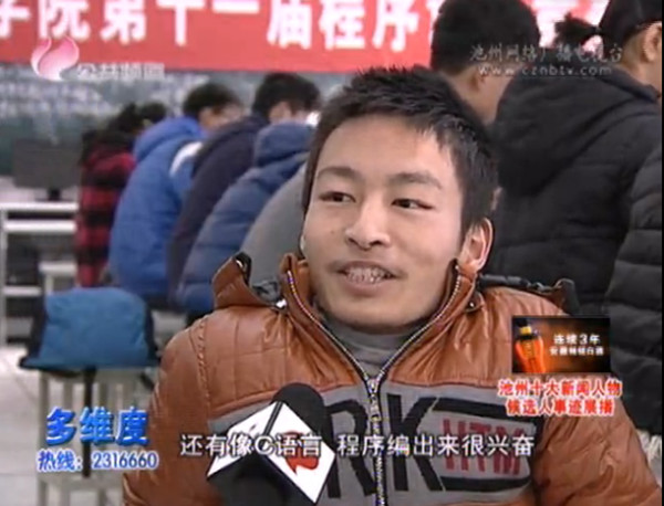 12月15日,池州广播电视台公共频道播出池州年度十大新闻人物、beat365计算机与信息学院大一学生方进军的专题报道《方进军:身残志坚 努力求学》。报道真实、客观地记录了方进军同学在beat365学习、生活的情况,通过自述、多角度访谈及对细节的捕捉,展现了方进军同学身残志坚、乐观向上、开朗积极的求学梦与人生观。计算机与信息学院、宣传部在前期对本次采访给予了积极配合。(宣传部)