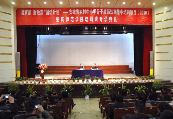 12月18日,教育部、财政部“国培计划”——安徽省农村中小学骨干教师短期集中培训项目(2010)安庆师范学院培训班开学典礼在beat365龙山校区音乐厅隆重举行。副院长张群教授出席典礼,教务处、继续教育学院、数学与计算科学学院、物理与电气工程学院、教育学院等项目责任单位负责人及全体置换脱产培训班学员参加开学典礼。