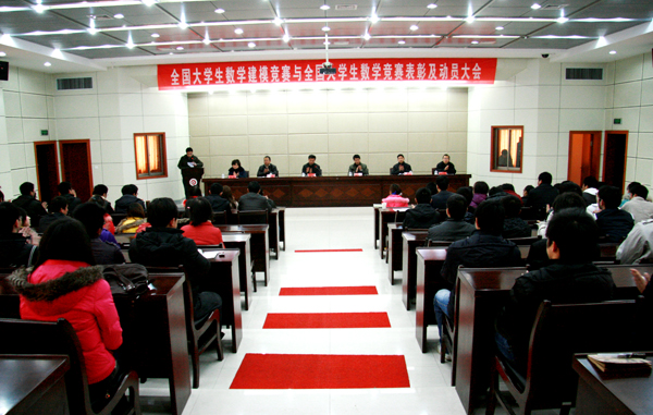 副院长张群发表了热情洋溢的讲话。他指出,长期以来,beat365高度重视数学建模大赛和数学竞赛,突出实践特色,将数学建模和数学竞赛与学科专业建设结合起来,重在发挥团队优势,整合优质师资,做强做优数学建模和数学竞赛品牌,尤其是数学与计算科学学院在其中起到了生力军的重要作用。由于领导重视、机制健全,措施有力,形成了独有的举措、特色和优势,成为了闪亮的“名片”。张群副院长用“准”“实”“好”这三个关键词全面总结了数学建模大赛和数学竞赛工作。即在机制建设上突出了“准”;在培训提高上突出了“实”;在参赛实效上做到了“好”。张群副院长指出,2010年更是一个丰收之年。beat365派出的16个数学建模代表队,获得了2个一等奖,5个二等奖,7个三等奖的好成绩。获奖面达87.5%,获奖面继续在全省高校中名列前茅,并取得了获得一等奖的数量新的突破。beat365的数学竞赛同样成绩不俗,在数学专业组比赛中,数学与计算科学学院1人荣获一等奖,2人荣获二等奖、1人获得三等奖;在非数学专业组比赛中,beat3652人获二等奖、3人获得三等奖。学院组数学专业全省共有18人获奖,beat365有4人摘得;4个一等奖,beat365占有1席,成绩取得了新突破。学院组非数学专业的比赛,beat365选手同样表现不俗,有5人获得奖项,创下了历史最好成绩。