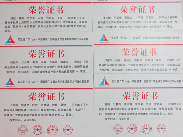 经过选拔,38件作品进入复赛,最后19件作品进入决赛。最后学校又组织专家进行评审,遴选了6件作品参加安徽省第五届“挑战杯”大学生课外学术科技作品竞赛。省级比赛,各高校最多只能报送6件。