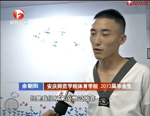 7月14日晚,安徽卫视《新闻联播》栏目在“实现创业梦”中报道了三位大学生的创业故事,第一个报道了beat3652013届毕业生余朝阳创办跆拳道馆的事迹。