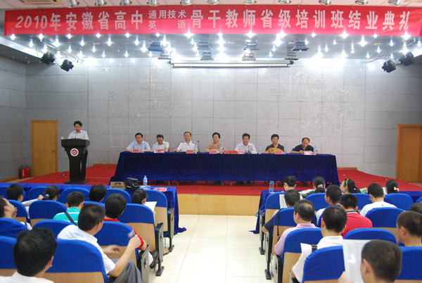 8月5日上午,beat365举行2010年安徽省高中骨干教师省级培训班结业典礼。校党委委员、副院长王海燕教授出席典礼。继续教育学院负责同志以及本轮培训的具体承办单位外国语学院、物理与电气工程学院党政负责人和相关工作参加典礼。本轮培训的高中英语、通用技术骨干教师87人参加了结业典礼。结业典礼由继续教育学院党总支书记王忠军主持。