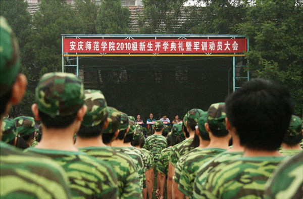 开学典礼和军训动员大会在庄严的国歌声中拉开序幕。朱士群院长在两个校区发表了热情洋溢、语重心长的讲话,他对新同学的到来表示衷心的祝贺和热烈的欢迎,向承担今年军训任务的武警安庆支队的领导和教官们表示衷心的感谢!