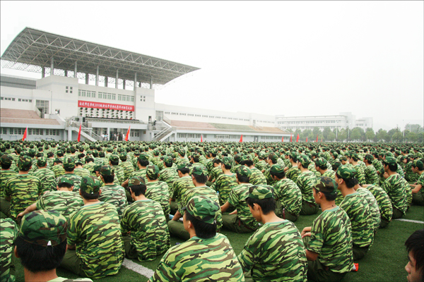 开学典礼及军训动员大会结束后,全体新生立即投入到紧张的军训当中。(陈东)