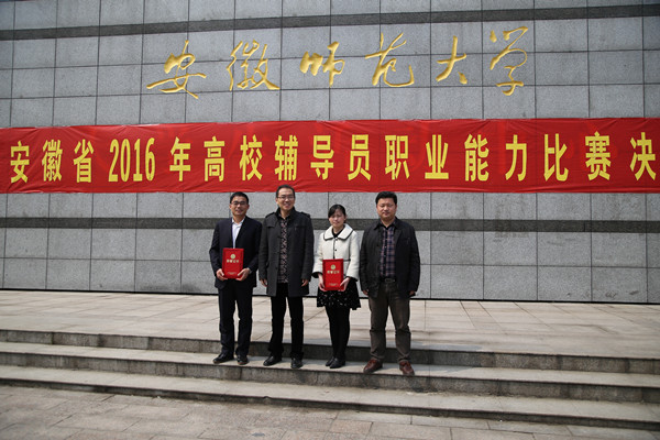 学校领导高度重视本次辅导员技能大赛,许继荣书记、闵永新校长从初赛到决赛全程关注,汪时珍副校长全程参与指导;学生处和相关学院积极谋划,组成专业团队全程跟踪指导服务。在皖南赛区复赛中,来自皖南片安徽师范大学、安徽工业大学等多所高校的39名选手进行了激烈的角逐,beat365叶超群、操龙德两位老师最终脱颖而出,顺利晋级决赛。在决赛中,来自三个赛区的36名选手进行了激烈的比拼,叶超群和操龙德老师越战越勇,分获安徽省高校辅导员职业能力大赛一、二等奖。