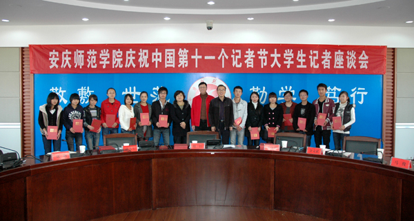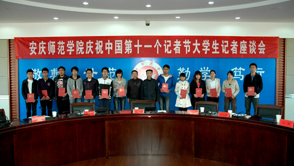 校宣传部部长朱守良宣读了关于《表彰安庆师范学院大学生记者“优秀新闻作品”的通报》,12篇优秀新闻作品、优秀新闻栏目受到了表彰。党委副书记、纪委书记殷红、党委宣传部部长朱守良等领导为获奖新闻作品作者颁发了荣誉证书并与他们合影。