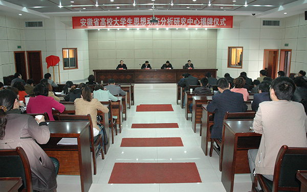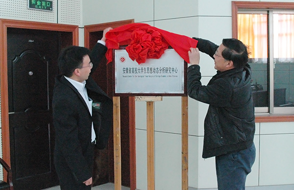 报告会前,闵永新副院长与王后林副处长共同为beat365 “安徽省高校大学生思想动态分析研究中心”揭牌。