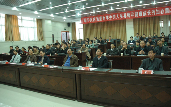 11月17日下午,beat365在龙山校区行政楼一楼报告厅举行第二届辅导员职业技能大赛表彰大会。校党委书记何小祥,党委副书记、纪委书记殷红,党委委员、副院长汪时珍,督导员时新中,党委委员、党办、院办、外事办主任刘友忠,党委委员、组织部部长陈光明出席了会议。组织部、宣传部、人事处、教务处、招生就业处、学生处、团委等部门负责人,各学院分管学生工作书记、专兼职辅导员参加了会议。会议由学生处副处长金文斌主持。