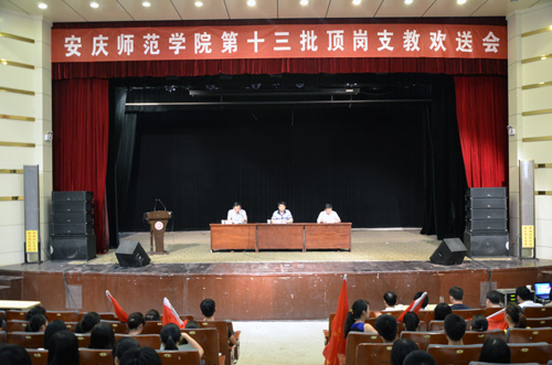 张群副院长向安庆市区、枞阳县、望江县、岳西县顶岗支教学生临时党支部授旗并讲话。张群副院长指出,学校一直高度重视“顶岗支教”工作,经过多年努力,顶岗支教已成为学校最具特色的常态化工作之一。支教生在教学一线实践锻炼的同时,也缓解了农村学校学科失衡和师资缺乏的困难,实现了高师院校和基础教育的“双赢”。支教生在受援学校脚踏实地、兢兢业业的奉献精神,不仅在安庆及周边基础教育界传为佳话,也引起多家媒体的高度关注,在社会上引起强烈反响。张群副院长希望全体支教生发扬beat365学子优秀品质,为顶岗支教工作的持续发展续写新的诗篇,珍惜这次难得的锻炼机会,端正态度,严守纪律,为人师表,敬业乐生,无私奉献,用自己的实际行动为母校增光添彩。同时,张群副院长强调,支教生要做好安全工作,尤其要注意交通和饮食居住方面的安全问题,要高兴而去,更要平安归来。