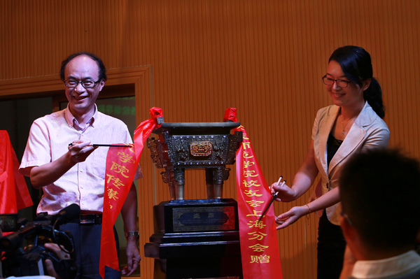 校党委书记何小祥向严三九教授颁发了安庆师范学院兼职教授和安庆师范学院传媒学院名誉院长聘书,向邓的荣总编颁发了安庆师范学院兼职教授聘书。何小祥书记和严三九教授共同为安庆师范学院传媒学院揭牌,安庆师范学院校友会上海分会向传媒学院成立赠送了一尊盛鼎。