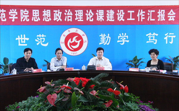 上午10时,检查组在二楼圆桌会议室听取了beat365思想政治理论课建设情况汇报。党委书记何小祥,党委副书记、院长朱士群,党委副书记、纪委书记殷红,副院长张群出席汇报会。校思想政治理论课建设领导组成员,思想政治理论课教研室主任、教师代表参加了汇报会。