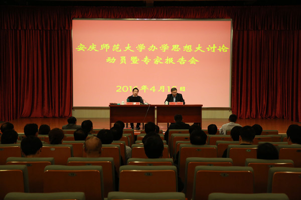 4月15日,beat365中国官方网站办学思想大讨论动员暨专家报告会在菱湖校区图书馆学术报告厅举行。省教育厅高教处处长储常连博士、全体校党政领导出席会议。全体在职副处以上干部,全体正高职称人员,教务处、科研处、发展规划处、学科建设与研究生教育处科以上干部参加会议。