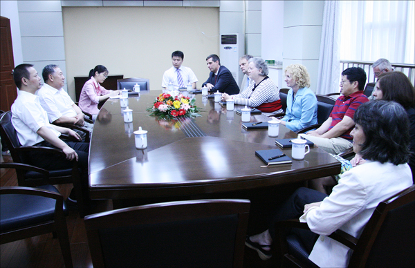 6月25日, 党委书记何小祥,院长朱士群,副院长王海燕、张群,党委委员、外办主任刘友忠正式会见了索尔兹伯里大学代表团一行。何书记首先代表学校领导班子和全体师生对索尔兹伯里大学代表团的来访表示热烈欢迎。他说,两校虽然远隔重洋,但是由于我们从事的最崇高的教育事业把我们联系在一起。我们衷心希望贵校此次的考察访问能使两校的友谊更加牢固、合作更加宽泛。索尔兹伯里大学副校长戴安•艾伦博士非常感谢安庆师院的盛情邀请和热情接待。她说,即将开始的学生互派项目已经使我们看到了更大的合作空间,此次访问还有许多交流的细节问题需要讨论。