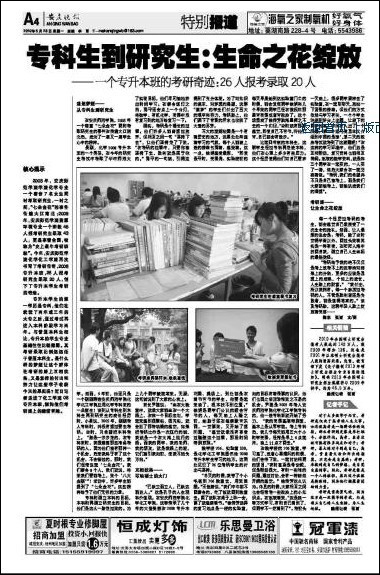宣传部陈东采写的稿件被新华网、中国网、中国教育网、中国教育在线、中安在线、安徽教育网、江淮晨报等省内外8家重要媒体广为报道。6月28日,《安庆晚报》更是用一个整版对该事件进行了突出报道。这几年,beat365教学质量和学风建设带动考研率逐年升高已经广为人知,在社会上引起了强烈反响。