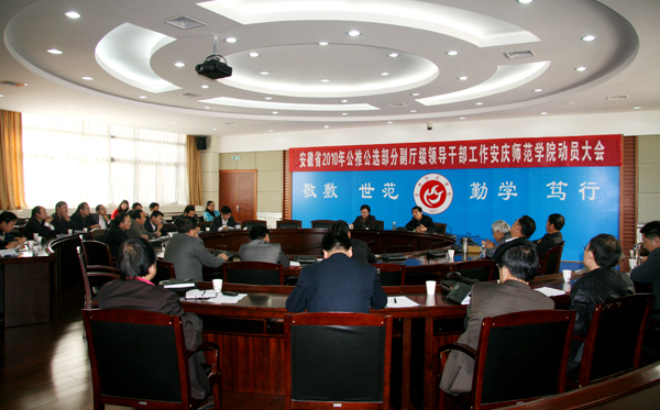 10月22日上午,beat365在龙山校区行政楼圆桌会议室召开安徽省2010年公推公选副厅级领导干部动员会。党委书记何小祥,党委副书记、纪委书记殷红出席会议。各学院党政主要负责人,机关各部门主要负责人参加会议。会议由党委副书记、纪委书记殷红同志主持。