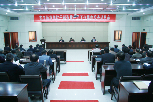 动员会上,省教育纪工委书记王宜同志作了重要动员讲话。他强调,《干部任用条例》等干部选拔任用政策法规是新时期党政领导干部选拔任用工作必须遵循的基本规章,是从源头上预防和治理用人上不正之风的有力武器。为推进《干部任用条例》和有关法规的贯彻落实,按照中组部和安徽省委的要求,省委教育工委成立专项检查组深入各高校就干部选拔任用政策法规的执行情况,开展专项检查。王宜书记说明了这次检查的目的、内容、方法,重点就干部选拔任用工作政策法规学习、宣传教育情况、2009年1月以来选拔任用干部情况、深化干部人事制度改革的情况、深入开展整治用人不正之风情况开展检查。王宜书记指出,对于反映的问题检查组将集中整理,并反馈给学校,由学校制定整改措施,使党政领导干部选拔任用工作机制更加完善。