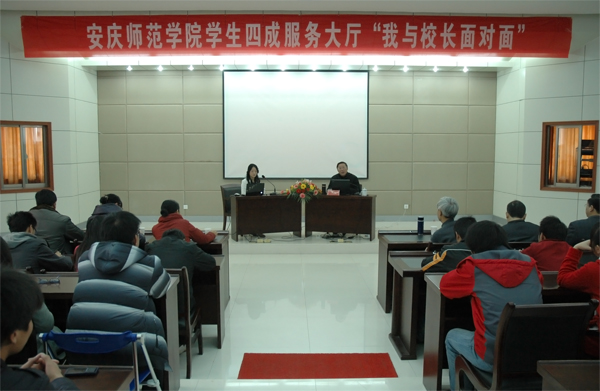 12月22号下午2:30,由学生“四成”服务大厅主办的“我与校长面对面”活动在龙山校区行政楼一楼会议室正式举行。党委委员、副院长闵永新应邀参加了此次活动。另外到场的嘉宾有后勤管理处、新校区建设办公室、国资处、后勤集团、校医院、学生处等部门相关领导。活动中闵永新副院长与来自全校各院系130多名学生代表围绕着学生“四成”和beat365后勤工作展开了亲切的交流。这是beat365今年开展的第二次“我与校长面对面”教育活动。