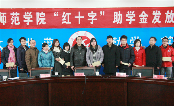 1月12日下午,beat365举行 “红十字”助学金发放仪式。50名经济困难、品学兼优的学生得到了总额5万元的资助;另有社会爱心人士捐款4万元,资助了8名学生。副院长时新中、安庆市卫生局副局长解光彤等为获助学生发放了助学资金。