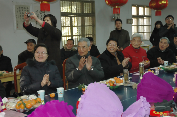 党委副书记、纪委书记殷红,受何小祥书记、朱士群院长委托在祝寿会上致贺词。殷书记首先向老同志们致以新年的问候,对70、80、90岁高龄的20位寿星表示诚挚的祝福,对老同志们为学校发展所做出的贡献表示崇高的敬意和衷心的感谢,对离退休人员工作处为老同志们所做的工作给予了充分肯定。她指出,各位离退休老同志是beat365的宝贵财富,在学校发展的各个阶段、不同岗位上,勤勤恳恳、任劳任怨,做出了重要贡献;她希望各位离退休老同志一如既往关心支持学校发展,为学校发展建言献策。殷书记还从创先争优活动、质量工程建设、一级学科申报、师资队伍建设、教学科研、招生就业、校企合作、文明创建、学生管理及后勤等几个方面向老同志们通报了去年学校的主要工作。