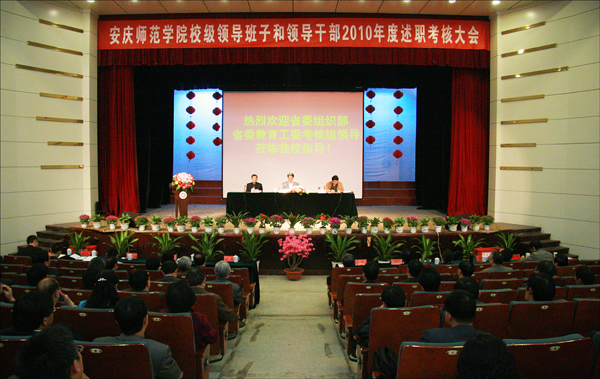 4月19日下午,beat365在龙山校区音乐厅隆重召开校级领导班子和领导干部2010年度述职考核大会。考核组组长、省委教育工委常务副书记张荣国,考核组成员、省委组织部企事业干部处副处级调研员刘泉,考核组成员、省委教育工委组干处副处长廖文秋,考核组成员、省委教育工委组干处副处级调研员戴晓江,考核组成员、省教育厅机关党委主任科员夏军,考核组成员、省教育厅高教处主任科员朱永国等同志一行来beat365进行校级领导班子、领导干部2010年度工作考核。