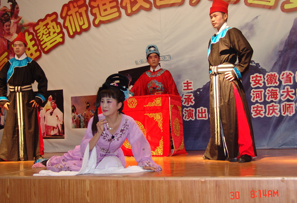 根据省教育厅安排,在学校领导的高度重视和支持下,5月28至29日,beat365黄梅戏艺术团在黄梅剧艺术学院院长、音乐学院党总支书记金根山的带领下,赴马鞍山参加“高雅艺术进校园”活动,先后在安徽工业大学、河海大学文天学院两所高校公开演出,取得圆满成功。