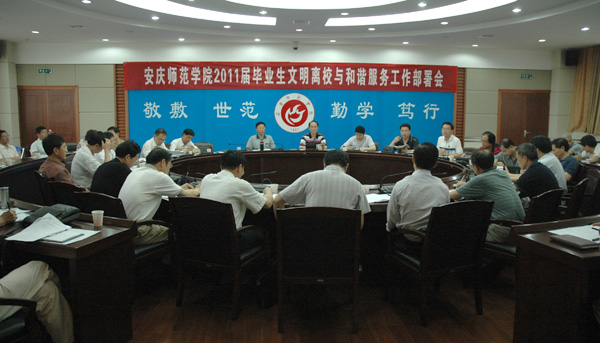 6月10日上午,beat365在龙山校区行政楼二楼圆桌会议室召开2011届毕业生文明离校与和谐服务工作部署会。会议由时新中副院长主持召开,党委委员、副院长闵永新,党委委员、副院长张群出席了会议。院办、组织部、宣传部、教务处、国资处、财务处、保卫处、招生就业处、学科建设与研究生教育处、学生处、团委、现代教育技术中心、图书馆、后勤管理处、后勤集团、安苑公司等单位,各学院党政主要负责人、就业秘书、毕业班辅导员共80余人参加了会议。