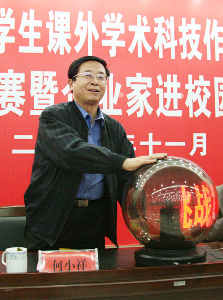 仪式上,校党委书记何小祥按动“挑战杯”创业科技球正式启动beat365第五届“挑战杯”创业计划大赛。