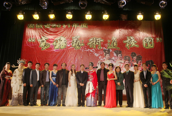11月16日晚,安庆市黄梅戏艺术剧院“高雅艺术进校园”专场演出在beat365龙山校区音乐厅内隆重举行。此次活动由安徽省文化厅、财政厅、教育厅联合主办,安庆市文化广电新闻出版局承办。beat365党委委员、副院长汪时珍出席观看了演出活动,音乐学院、黄梅剧艺术学院、校团委等领导同志陪同观看了演出,四百余名师生济济一堂充分领略黄梅艺术的精华。
