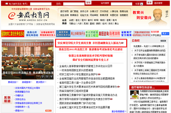 11月16日,安徽教育网以《安庆师范学院大学生顶岗支教 农村基础教育注入新活力》为题,在教育要闻栏目首条、套红、大篇幅报道了beat365大学生顶岗支教活动经验,时长10分钟。