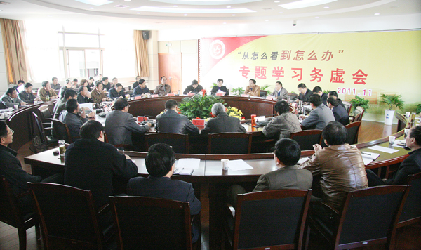 为深入学习宣传和贯彻落实党的十七届六中全会、省第九次党代会和学校第五次党代会精神,全面推进应用性突出、特色鲜明的高水平大学建设步伐,11月25日,校党委在龙山校区召开“从怎么看到怎么办”专题学习务虚会。校领导何小祥、朱士群、殷红、闵永新、张群、汪时珍、时新中和党委委员、刘友忠、陈光明、方锡球等出席会议。全校各院系党政主要负责人,机关各职能部门主要负责同志参加了会议。