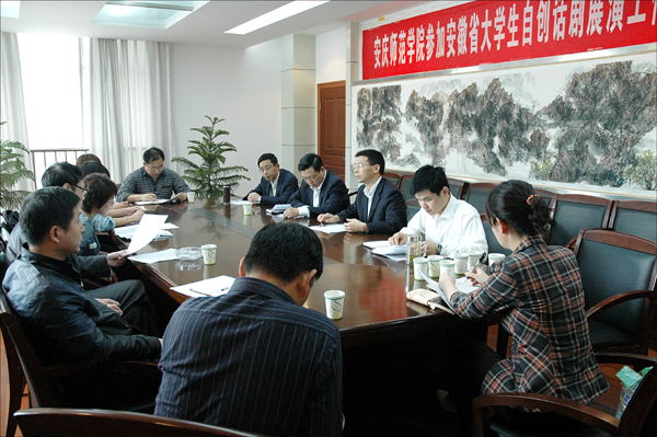 汪时珍副院长发表讲话,他指出,学校高度重视安徽省举办的大学生自创话剧展演活动,成立了领导小组,党委书记何小祥亲自挂帅担任组委会主任。他充分肯定了文学院和有关部门做的前期工作,要求继续加大指导力度,高标准、高质量地抓好剧本创作和排演工作,力争拿出精品参赛。他同时要求相关部门要从经费、人力、物力等方面予以大力支持,校团委要做好活动过程的管理工作,各部门通力合作,争取一流,追求卓越。
