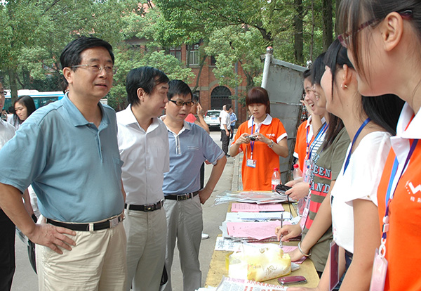 校领导何小祥、闵永新、张群、汪时珍、刘友忠等亲临龙山校区、菱湖校区的新生报到点检查指导迎新工作,慰问承担迎新工作的师生员工,看望新生和家长。