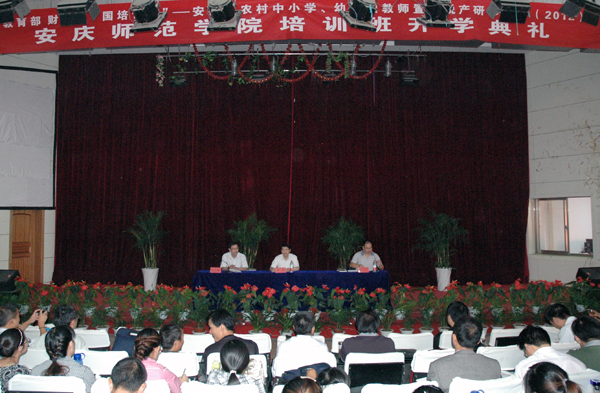 9月16日上午,beat365在龙山校区图书馆东报告厅隆重举行教育部、财政部“国培计划(2012)”——安徽省中小学、幼儿园教师置换脱产研修项目培训开班典礼。副院长张群出席会议,教务处、各项目承担学院负责人、各培训班班主任、“国培计划”项目办公室全体人员、置换培训研修班全体学员参加会议。会议由教务处处长张元广主持。