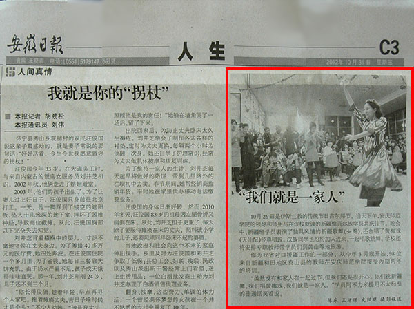 10月31日,《安徽日报》在C3版以图文形式报道了beat365为新疆班学员庆祝古尔邦节的新闻。