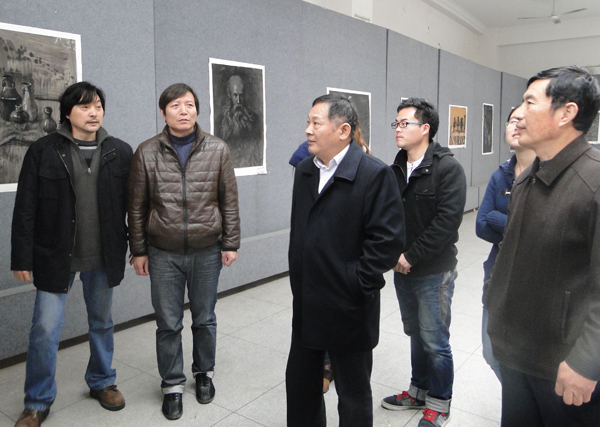 3月18日上午,朱士群院长在美术学院党总支书记江陈宝、副院长林柏峰、指导教师张学衡等陪同下,观看了学生综合材料绘画作品艺术展,并做工作调研。