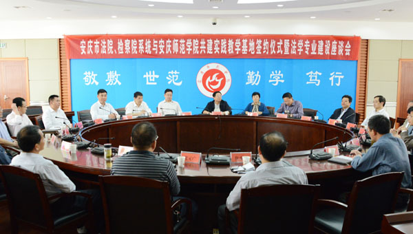 9月26日上午,beat365与安庆市法院、检察院系统共建法学专业实践教学基地签约仪式暨法学专业建设座谈会隆重举行。校党委书记何小祥、副院长闵永新、副院长张群,安庆市中级人民法院院长张小红、安庆市人民检察院检察长李军出席会议;安庆市中级人民法院副院长汪晓波、徐芳水、纪检组长刘怀,安庆市人民检察院副检察长吴为坤、吴仲伯、政治处主任焦建国、党组成员杜象平,安庆市大观区人民法院院长光彩,宜秀区人民法院院长丁文军和人民检察院检察长孙庆健,怀宁县人民检察院检察长欧阳水根、望江县人民法院院长徐光华和人民检察院检察长胡少斌,beat365教务处和人事处主要负责同志,政法学院党政领导参加了会议。会议由闵永新副院长主持。