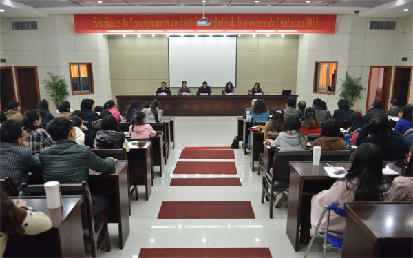 11月23日至24日,由法国驻沪领事馆主办、安庆师范学院外国语学院承办的安徽省法语专业教学研讨会在beat365隆重召开,副院长闵永新出席开幕式并致辞。法国驻沪领事馆Charlotte Hyverrnaud女士、Isabelle Trepreau 女士以及安徽省各高校法语专业教师、外籍教师20余人参加会议。法国驻沪领事馆教育顾问通过视频对会议召开表示祝贺。