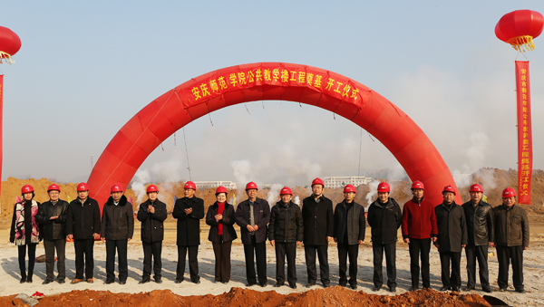 1月2日上午,简朴的公共教学楼工程奠基仪式在工程施工现场举行,全体校党政领导为公共教学楼工程奠基。工程施工单位安徽华力建设集团有限公司总经理赵学军,工程监理单位安徽科创工程项目管理公司代表,beat365生命科学学院、资源环境学院、外国语学院、院长办公室、新校区建设办公室等相关院系、职能部门负责人参加了奠基仪式。