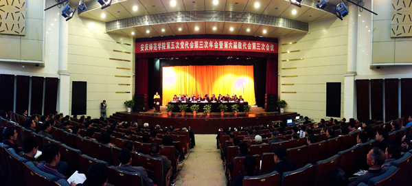 党委书记何小祥作重要讲话。他指出,安庆师范学院第五次党代会第三次年会暨六届三次教代会经过全体与会代表的共同努力,圆满完成了既定议程,会期虽短但内容丰富,突出了凝心聚力、共谋发展的主题,充满了民主热烈、团结和谐的气氛,体现了求真务实、改革创新的精神。他强调,2014年是学校深入贯彻党的十八届三中全会精神的开局之年,也是推进应用性突出、特色鲜明的高水平大学建设的关键之年,各项工作任务十分繁重,因此,全校上下应该认清形势,提高认识,不断增强发展的责任感和使命感;深化改革,开拓创新,不断开创各项工作新局面;同心同德,狠抓落实,确保年度工作顺利完成。展望未来,安庆师范学院展现出前所未有的美好前景。全校上下一定要深入学习贯彻党的十八大和十八届三中全会精神,在省委、省政府、省委教育工委、省教育厅的坚强领导下,解放思想,同心同德,开拓进取,顽强拼搏,为全面建成应用性突出、特色鲜明的高水平大学而努力奋斗!
