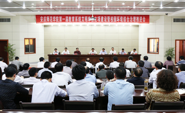 校党委副书记、纪委书记、校文明委副主任殷红传达布置了《安庆师范学院第一届教育系统文明单位立项建设工作方案》。校党委委员、副校长、校文明委副主任刘友忠传达布置了《安庆师范学院校园环境综合治理实施方案》。(宣综)