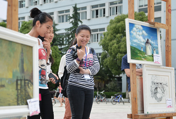 5月22、23日,美术学院在敬敷广场举办第四届经济困难生优秀作品义卖。该活动以“自立自强,感恩社会”为主题,是由美术学院受到各类资助的同学发起,党员、入党积极分子和学生干部积极参与,深受广大团员青年喜爱的一项传递正能量的公益慈善活动。
