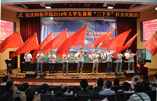 启动仪式上,副院长闵永新希望青年学子时刻牢记习近平总书记的嘱托,努力做社会主义核心价值观的自觉践行者和积极倡导者,并向广大“三下乡”志愿者提出四点希望:一要在实践创新中夯实知识根基。希望同学们坚持理论与实践的紧密结合,做到知行合一,在实践中不断夯实自身知识根基,带着调研项目扑下身子,到基层、到企业、到农村、到社区,去认真调研、认真思考、认真实践,积极创新,同时也为“挑战杯”竞赛打下坚实的基础,真正实现“双赢”。二要在实践创新中服务人民群众。希望同学们在实践的过程中与群众建立联系、建立感情,在向群众学习的过程中熏陶思想、提升素质、增长才干,充实自我、完善自我。三要在实践创新中创造青春业绩。希望同学们在社会实践活动中,积极结合专业学习,充分发挥自身知识、技能优势,为美好乡村建设建言献策、有所作为,创造无愧于时代、无愧于人民的青春业绩。四要在实践创新中提升个人修养。希望同学们意识到每位师院学子都是学校的形象大使,都是学校精神文化的传播者,要以深厚的爱校之心体现在言谈举止中,体现在实际行动中,体现在扎扎实实的业绩中,通过大家的共同努力,让安庆师范学院的旗帜更加鲜艳,更加光彩夺目。最后,闵永新副院长引用一位著名学者的话与同学们共勉:“请记住你所站立的地方,就是你的中国;你怎么样,中国便怎么样;你是什么,中国便是什么;你有光明,中国就不会黑暗!”