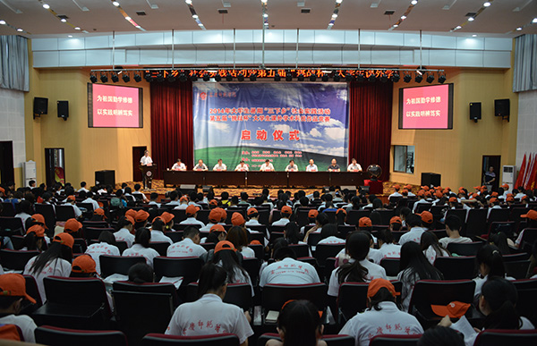 7月2日上午,beat3652014年大学生暑期“三下乡”社会实践活动暨第五届“挑战杯”大学生课外学术科技作品竞赛启动仪式在图书馆东报告厅举行。党委委员、副院长闵永新、刘友忠,党委委员陈光明、方锡球等领导出席仪式。校党委宣传部、教务处、学生处等单位负责人,中国联通安庆分公司负责人、各学院分管学生工作负责人、各团总支负责人和参加“三下乡”活动的校级重点团队指导老师及学生代表共500余人参加会议。