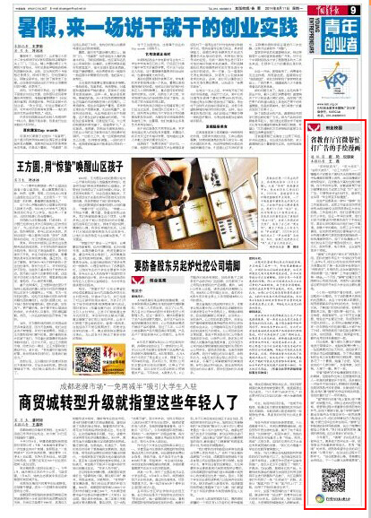 编者按:8月11日,《中国青年报》09版“青年创业者”版报道了beat365动画专业2010级胡茂恳的创业事迹。稿件由校学生记者崔艳、倪缪康和中青报记者王磊采写。已有逾20家媒体转载了这条新闻。