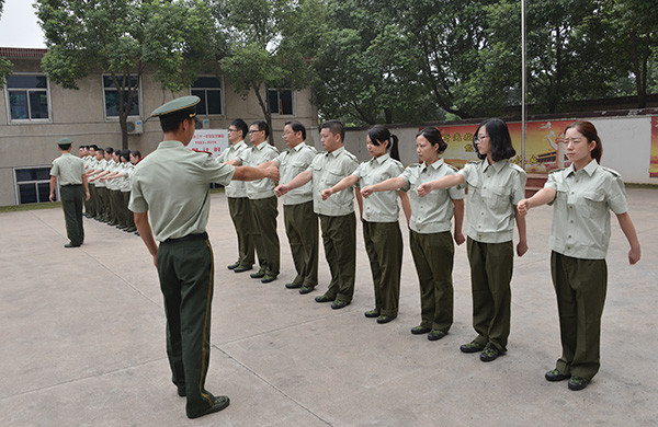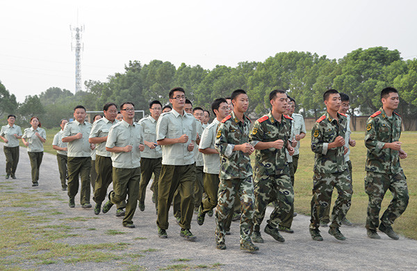 开班典礼结束后,学员和教官立即投入到紧张的军事训练中。 “两脚跟并拢,脚尖分开约60度,小腿挺直,收腹挺胸……” 武警支队的教官们一边向大家演示动作要领,一边帮助学员纠正姿势,训练不久,大家便感到全身无数汗滴在涌动。第一天学员们就经历了3000米长跑的训练,之后的信任背摔、同心同行的心理行为训练,更是让学员感受到这次培训的分量。“接到通知的时候我还认为训练应该不会那么严格,但到了基地后,才感受到了真正的部队式训练。”不少学员都这样感慨。训练间隙,学员们与教官亲切交流,了解到军队生活的方方面面,感受到了部队生活的严谨和艰苦。