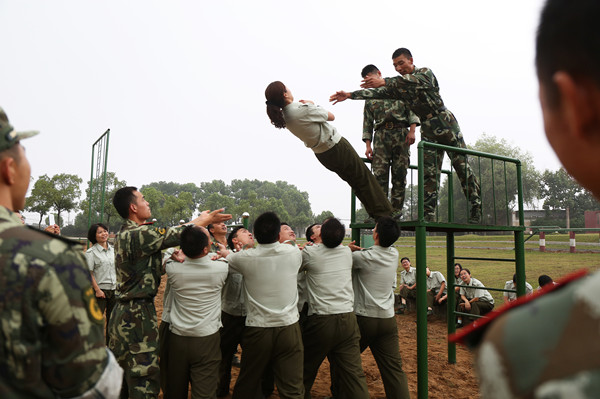 在受训辅导员中,男女各占21名。在短短两天的时间里,他们接受了队列、3000米长跑、信任背摔、同心同行等项目的训练。据该校学生处处长金文斌介绍,之所以如此,是因为在新生军训工作中,辅导员往往是“站着、看着的多,操练的少”,学校希望通过此次训练,加深辅导员对军训的认识。金文斌处长同时表示,明年暑期学校将对全体辅导员进行军训,在训练时间和项目上都将有所增加。