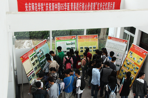 为贯彻落实《共青团中央在青少年中广泛开展“庆祝新中国65华诞 青春践行核心价值观”主题活动的通知》(中青发[2014]21号)精神,按照团安徽省委统一部署,校团委还专门发文要求各学院团总支、学生会运用主题团日、专题展览、报告会、阅读分享、新媒体传播等多种形式,在学生中广泛开展宣传烈士英雄事迹、弘扬烈士英雄精神的活动。(文/学生记者:李璇 储晶晶 图/陈东 学生记者:倪缪康)