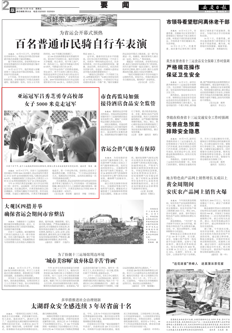 安庆日报:http://aqdzb.aqnews.com.cn/aqrb/html/2014-10/11/content_346766.htm