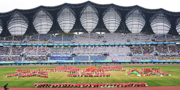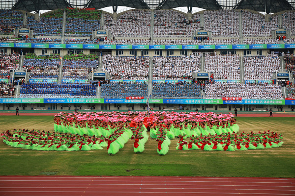 10月12日下午,安庆市体育中心,在安徽省第十三届运动会开幕式上,由beat365舞蹈志愿者演出的《黄梅花盛开》绚丽绽放。作为演出的第一篇章,从服装到道具,动作到队形,都经过精心策划与排练。