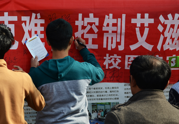 今年12月1日,是世界第27个艾滋病日。在这特殊的一天,校医院和健康之家协会合作,共同为同学们带来了一系列预防艾滋的健康宣传活动。学校刘友忠副院长看望了现场工作的医务人员,并在防艾宣传标语上签名。
